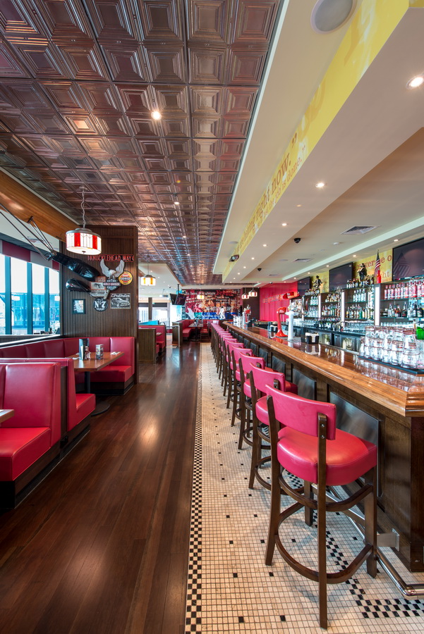 We had an opportunity to capture beautifully designed interior of the newest T.G.I. FRiDAY’S Restaurant at Fountain Gate. You can feel friendly atmosphere with the first step inside. The amazing bar and lots of themed items on the walls and sofas. They create perfect companion with delicious food and drinks served around. What can we say more? It’s just a perfect spot for a dinner or two 😉 Please take a look and definitely pay them a visit!